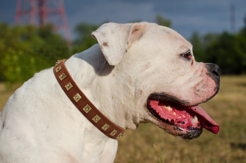 1 inch (25 mm) wide Studded Leather Dog Collar for American Bulldog