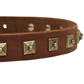 Another point that makes this Leather Dog Collar unbelievably beautiful is Decoration that is made with the help of 1 row brass square studs. 1 row of hand set brass square studs not just complement the collar but singles out it, makes it unique, attractive, special.